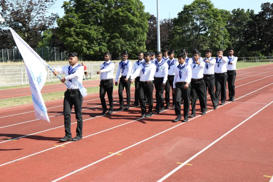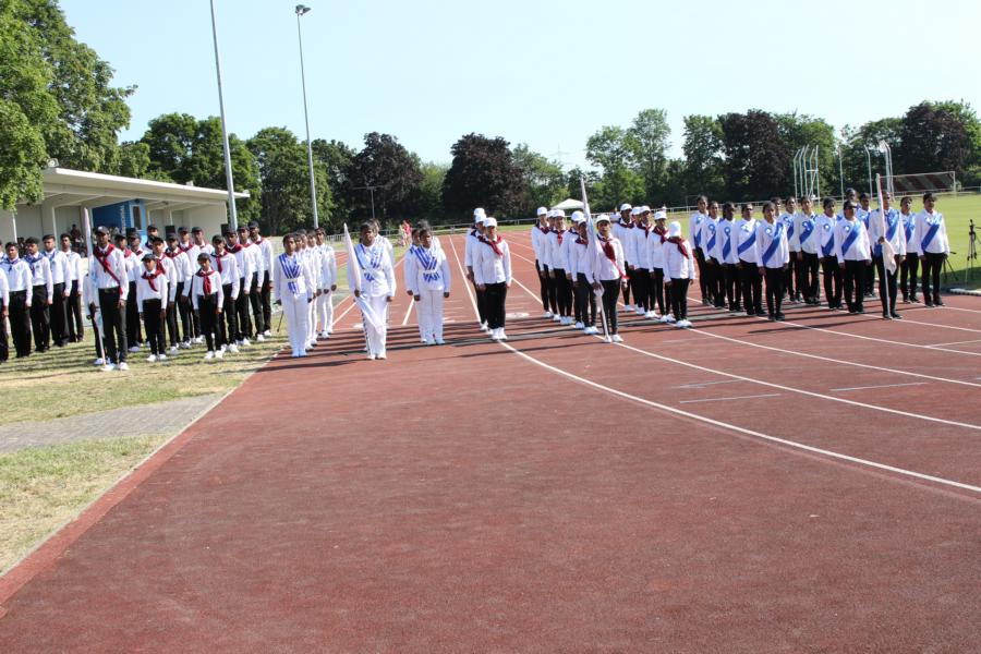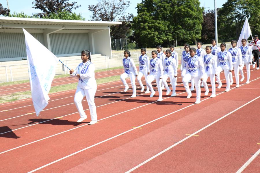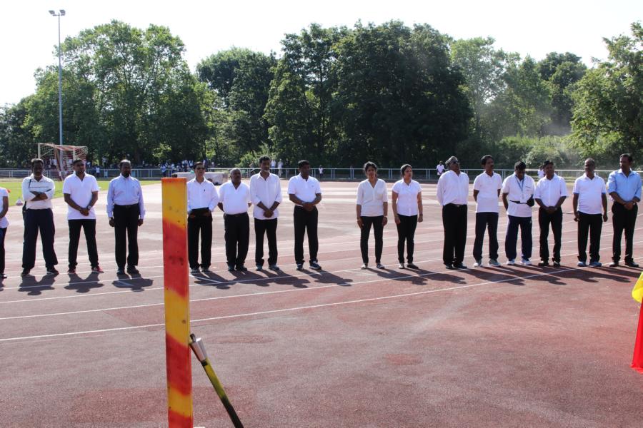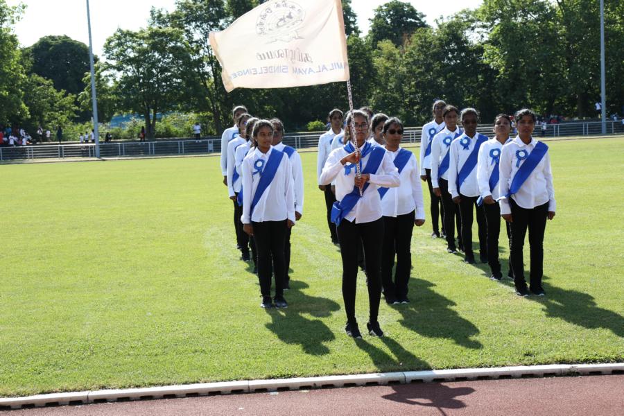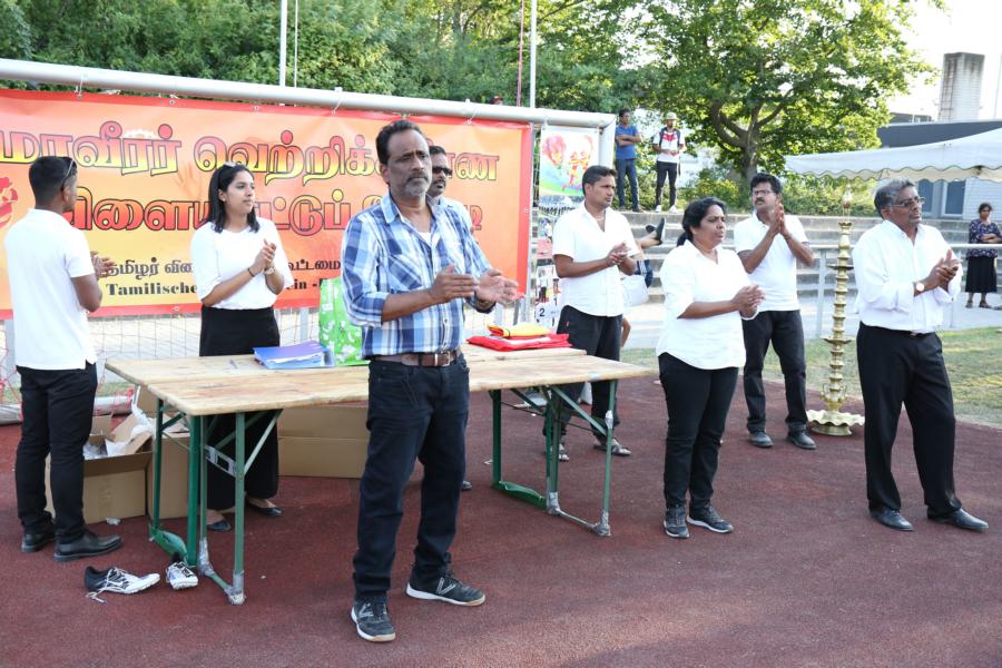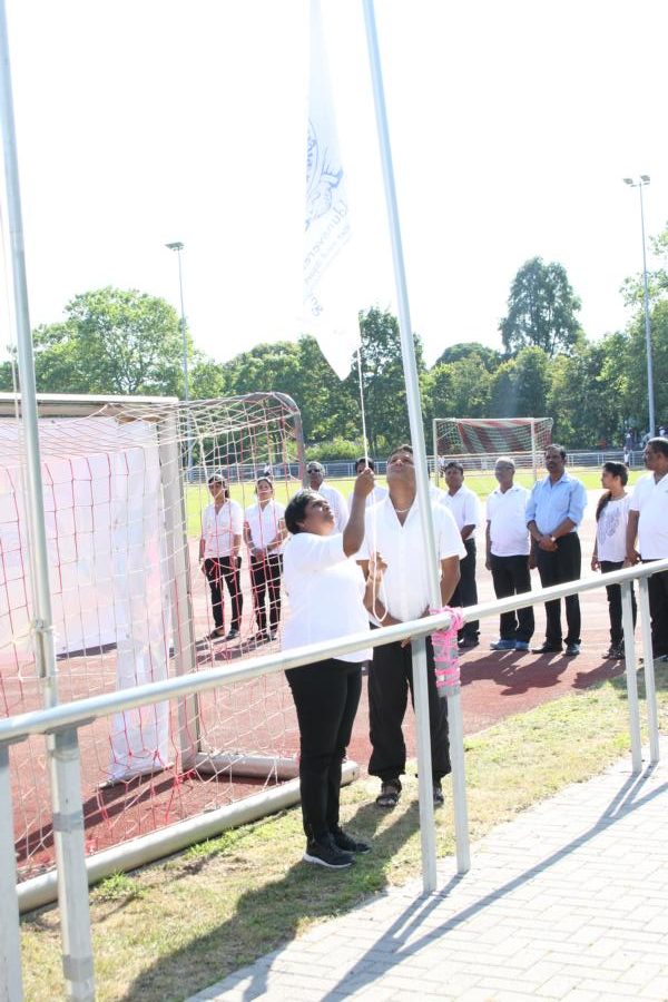 ஈகைச்சுடர் ஏற்றிவைக்கப்பட்டு, யேர்மனியத் தேசியக் கொடியுடன் தமிழீழத் தேசியக் கொடியும் ஏற்றிவைக்கப்பட்டது. பின்பு தமிழ்க் கல்விக் கழகக்கொடி ஏற்றிவைக்கப்பட்டு விளையாட்டு வீர வீராங்கணைகளினால் ஒலிம்பிக் தீபம் மைதானத்தைச்சுற்றி ஏந்திவந்து ஏற்றிவைக்கப்பட்டது. அதனைத் தொடர்ந்து மாணவ மாணவிகளின் அணிவகுப்புக்கள் ஆரம்பமாகின.
