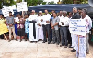 இந்த போராட்டம் இன்று (வியாழக்கிழமை) காலை 10.30 மணியளவில் மன்னார் மாவட்டச் செயலகத்திற்கு முன்பாக முன்னெடுக்கப்பட்டது.