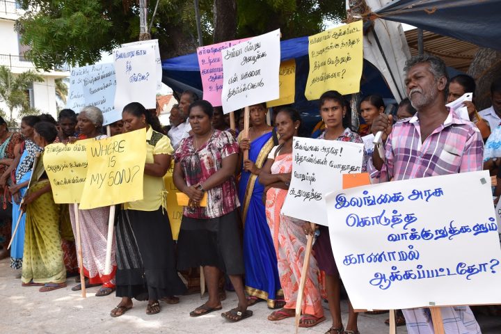 ‘இலங்கை அரசே உண்மையை மறைக்காதே ஒருநாள் நிச்சயம் வெளிவரும், ‘சர்வதேசமே எங்களுக்கான நிரந்தர தீர்வை இலங்கை அரசிடம் இருந்து பெற்றுத் தாருங்கள்’, ‘அம்மா என அழைக்க என் மகனை திருப்பிக்கொடு’, ‘மரண பதிவு வேண்டாம் மகனை தா’, ‘இலங்கை இராணுவத்திடம் ஒப்படைக்கப்பட்ட உறவுகளை திருப்பி தா’, ‘இலங்கை அரசு கொடுத்த வாக்குறுதிகளும் காணாமலாக்கப்பட்டதோ?’ உள்ளிட்ட பல்வேறு வாசகங்கள் எழுதப்பட்ட பதாதைகளை ஏந்தியவாறு காணாமலாக்கப்பட்டவர்களின் உறவினர்கள் அமைதியான முறையில் கவனயீர்ப்பு போராட்டத்தில் ஈடுபட்டனர்.