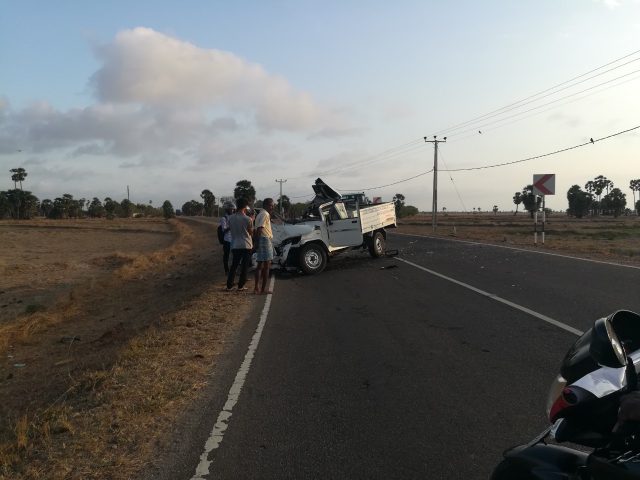 லொறியும் சிறிய ரக வாகனமும் நேருக்கு நேர் மோதியதில் இந்த விபத்து இடம்பெற்றுள்ளது.