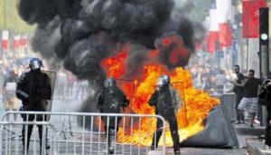 பிரான்சில் தேசிய தின கொண்டாட்டத்தில் இருதரப்புக்கும் இடையே ஏற்பட்ட மோதலில் வன்முறை வெடித்து பாரீஸ் நகரம் போர்க்களமாக காட்சி அளித்தது.