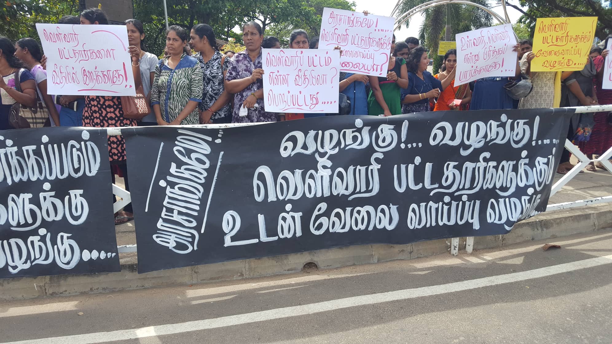 HNDA, மற்றும் வெளிவாரி பட்டதாரிகள் பட்டதாரி பயிலுனர் நியமனத்தினுள் புறக்கணிக்கபட்டமையை கண்டித்தும்,பாக பிரிப்பினையை கைவிட்டு அனைத்து பட்டதாரிகளுக்கும் இவ் ஓருடத்துள் நியமனம் வழங்க வலியுறுத்தியும் மட்டக்களப்பு வேலையற்ற பட்டதாரிகள் சங்கம் மற்றும் பாராளுமன்ற உறுப்பினர் அமல் தலமையிலான முற்போக்கு தமிழர் அமைப்பு போன்றவற்றின் ஒழுங்குபடுத்தலில் (27.07.2019) காலை 9.00 மணிக்கு மட்டக்களப்பு காந்தி பூங்காவில் ஆர்ப்பாட்டம் ஒன்று இடம்பெற்று வருகின்றது.