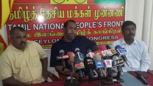 கொக்குவிலுள்ள தமிழ்த்தேசிய மக்கள் முன்னணியின் அலுவலகத்தில் இன்று திங்கட்கிழமை(29) பிற்பகல் ஊடகவியலாளர் சந்திப்போன்று இடம்பெற்றது. இந்த ஊடகவியலாளர் சந்திப்பில் இந்தியா அல்லது சர்வதேச நாடொன்று மூன்றாம் தரப்பு மத்தியஸ்தமாக வந்து எழுத்துமூலமான உறுதிமொழியை வழங்கும் பட்சத்தில் தாம் அவர்கள் கூறும் புதிய ஜனாதிபதி வேட்பாளருக்கு ஆதரவு வழங்கத் தயாரெனத் தமிழ்மக்கள் கூட்டணி தெரிவித்துள்ளது. இதுதொடர்பாக உங்கள் கருத்தென்ன? என ஊடகவியலாளரொருவர் கேள்வி எழுப்பினார்.