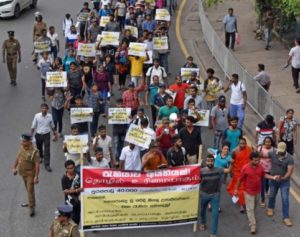 பட்டதாரிகளுக்கான நியமனத்தின் போது அவர்கள் உள்வாரி வெளிவாரி என வேறுபடுத்தப் படுகின்றமைக்கு எதிர்ப்பு தெரிவித்து ஒன்றிணைந்த வேலையில்லா பட்டதாரிகள் சங்கத்தினரால் ஏற்பாடு செய்யப்பட்ட எதிர்ப்பு பேரணி; இன்று இடம் பெற்றது.இதன் போது சுமார் 100 இற்கும் அதிகமான வேலையில்லா பட்டதாரிகள் கோட்டை புகையிரத நிலையத்திற்கு முன்பாக அணிதிரண்டிருந்தனர்.