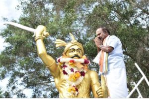 காலை 8.15மணிக்கு வவுனியா மாவட்ட செயலக முன்றலில் அமைந்துள்ள பண்டாரவன்னியனின் நினைவுத்தூபிக்கு, ஜனாதிபதி சட்டத்தரணியும் அவரது சிலை மாவட்ட செயலகத்தில் அமைவதற்கு காரணமாகவிருந்தவருமான மு.சிற்றம்பலம் மலர்மாலை அணிவித்து மரியாதை செலுத்தினார்.