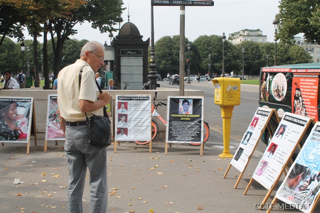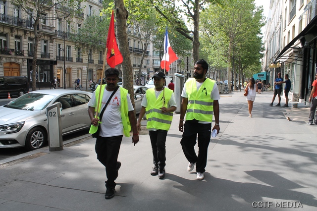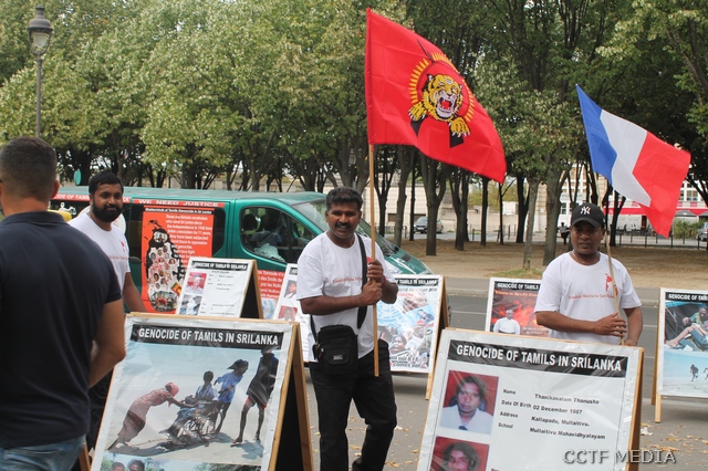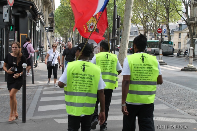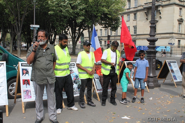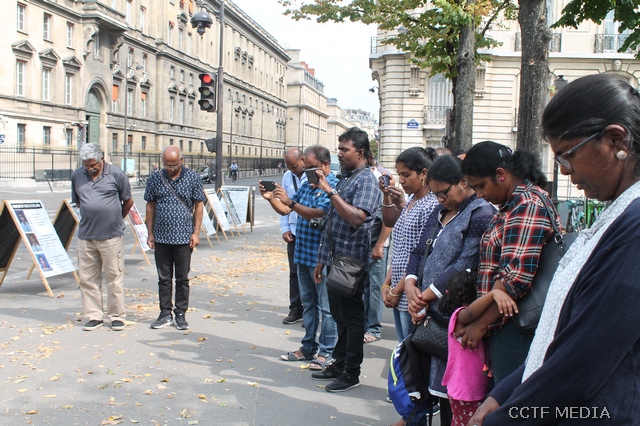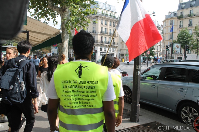 பிரான்சு பாரிசில் பிரெஞ்சுப்பாராளுமன்றம் முன்பாக இன்று (28.08.2019) புதன்கிழமை 11.00 மணிக்கு சிறிலங்கா இனவாத அரசினால் திட்டமிட்டு நடாத்தப்பட்ட தமிழினப் படுகொலைகளின் சாட்சியங்கள் அடங்கிய நிழற்படக்கண்காட்சி இடம்பெற்றதைத் தொடர்ந்து 15.00 மணிக்கு அகவணக்கம் செலுத்தப்பட்டு நடைபயணப்போராட்டம் ஆரம்பித்துவைக்கப்பட்டது. 3 மனிதநேய செயற்பாட்டாளர்களினால் முன்னெடுக்கப்பட்ட இப்போராட்டம் 15.09.2019 ஜெனீவா மனிதவுரிமைகள் சதுக்கம் வரை (முருகதாசன் திடலில்) நிறைவடையவுள்ளது. இன்றைய தினம் பாரிசின் பிரதான வீதிகளின் ஊடாகச் சென்ற இந்நடைபயணம் 18.30 மணியளவில் சுவாசிலுறூவா மாநகரசபை முன்றிலில் நிறைவடைந்தது. அங்கு அப்பகுதியில் உள்ள மக்கள் மனிதநேய செயற்பாட்டாளர்களை வரவேற்றிருந்தனர். நாளை காலை 08.30 மணிக்கு குறித்த பகுதியில் இருந்து நடைபயணம் ஆரம்பமாகவுள்ளது.