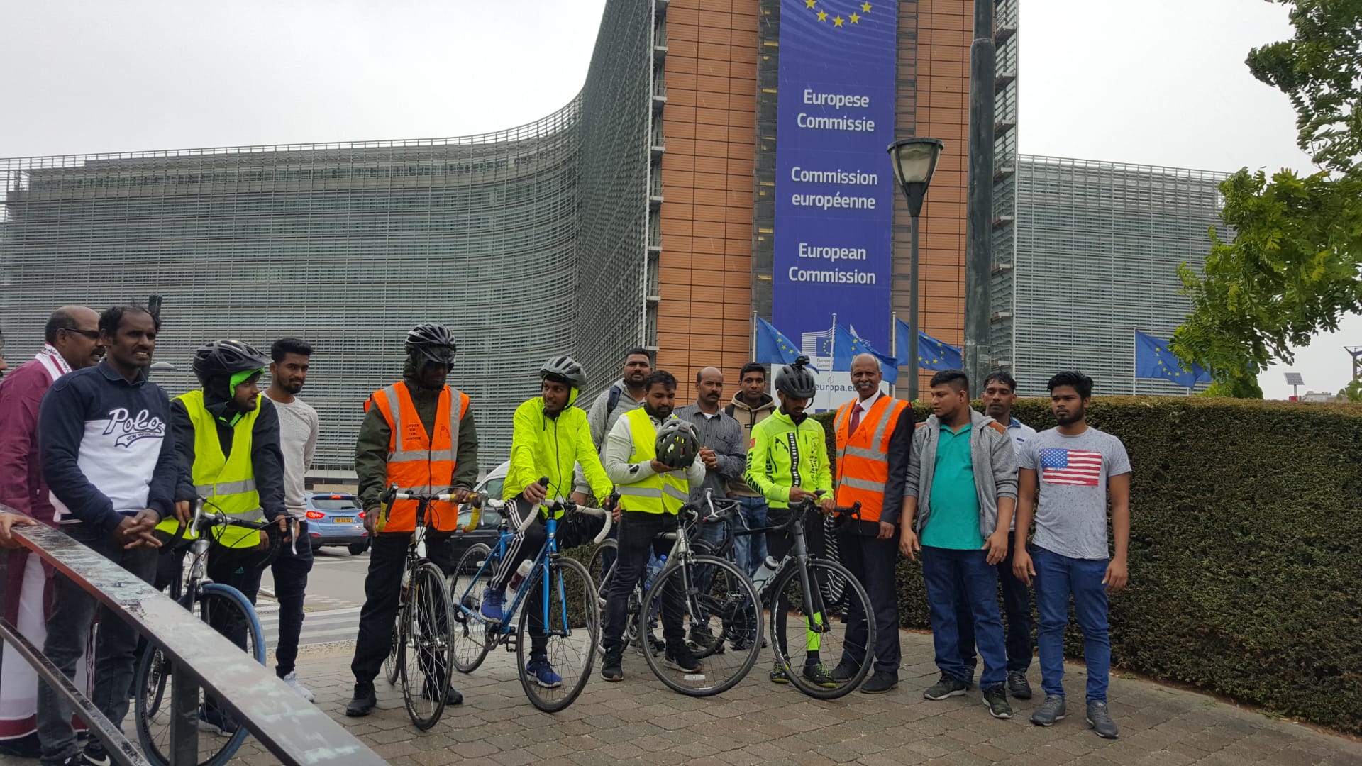 இன்று 4.9.2019 புதன்கிழமை தமிழின அழிப்பிற்கு நீதி வேண்டி ஐ.நா நோக்கி மிதிவண்டியில் பயணிக்கும் மனித நேயப் பணியாளர்களின் போராட்டம் புறுக்செல்ஸ் நகரத்தில் ஆரம்பமாகியுள்ளது.