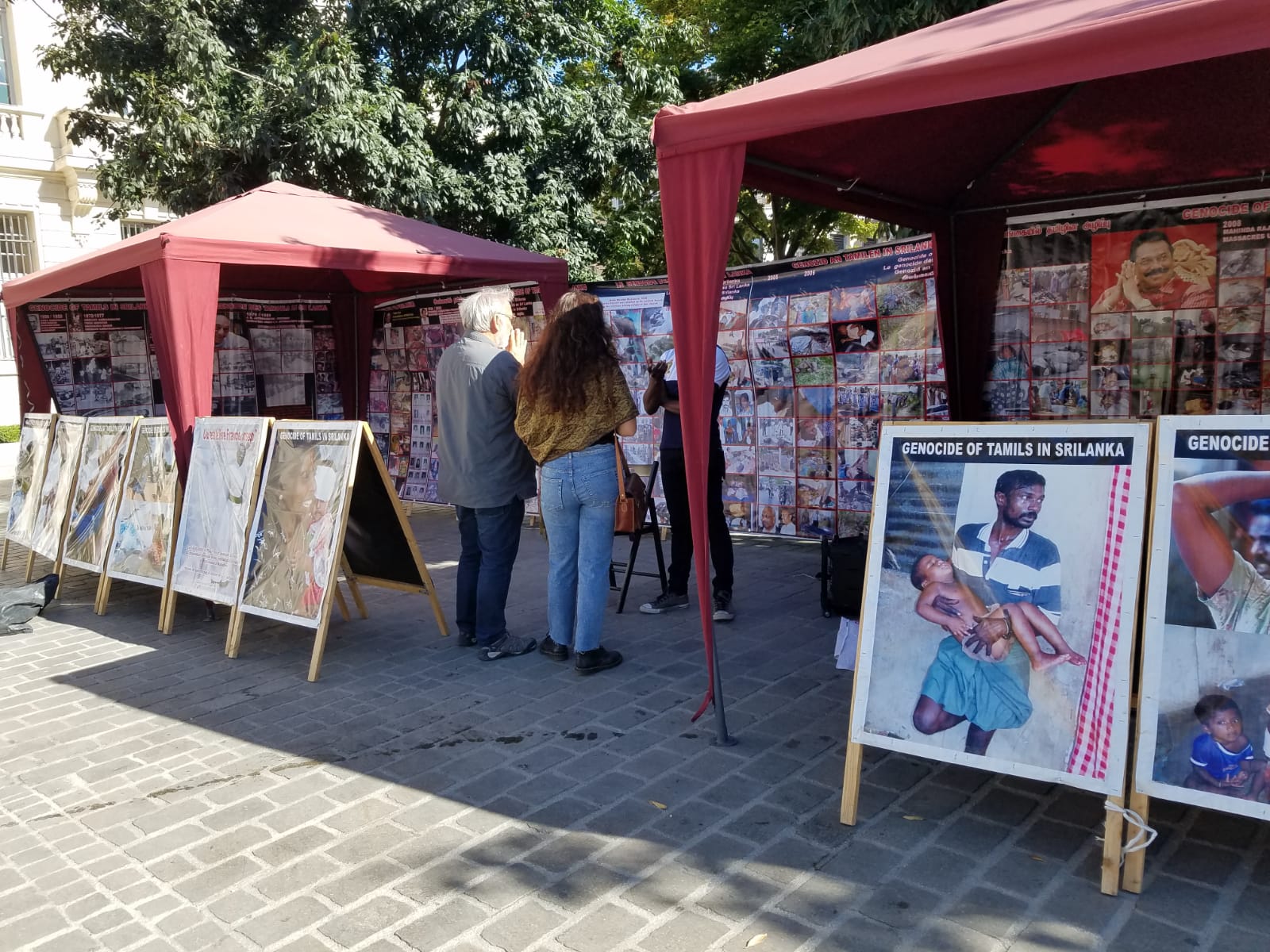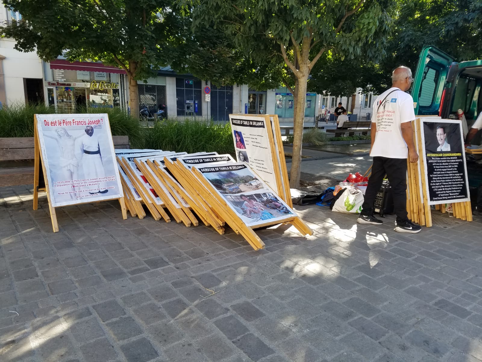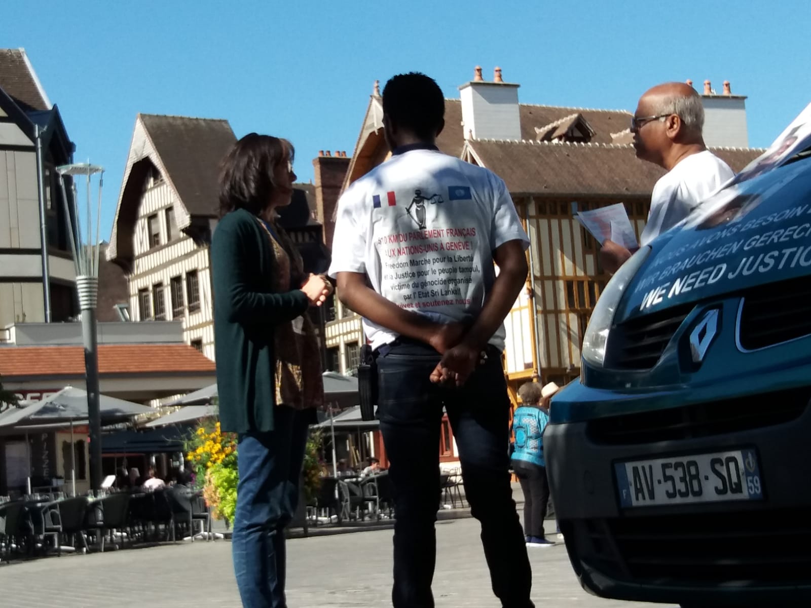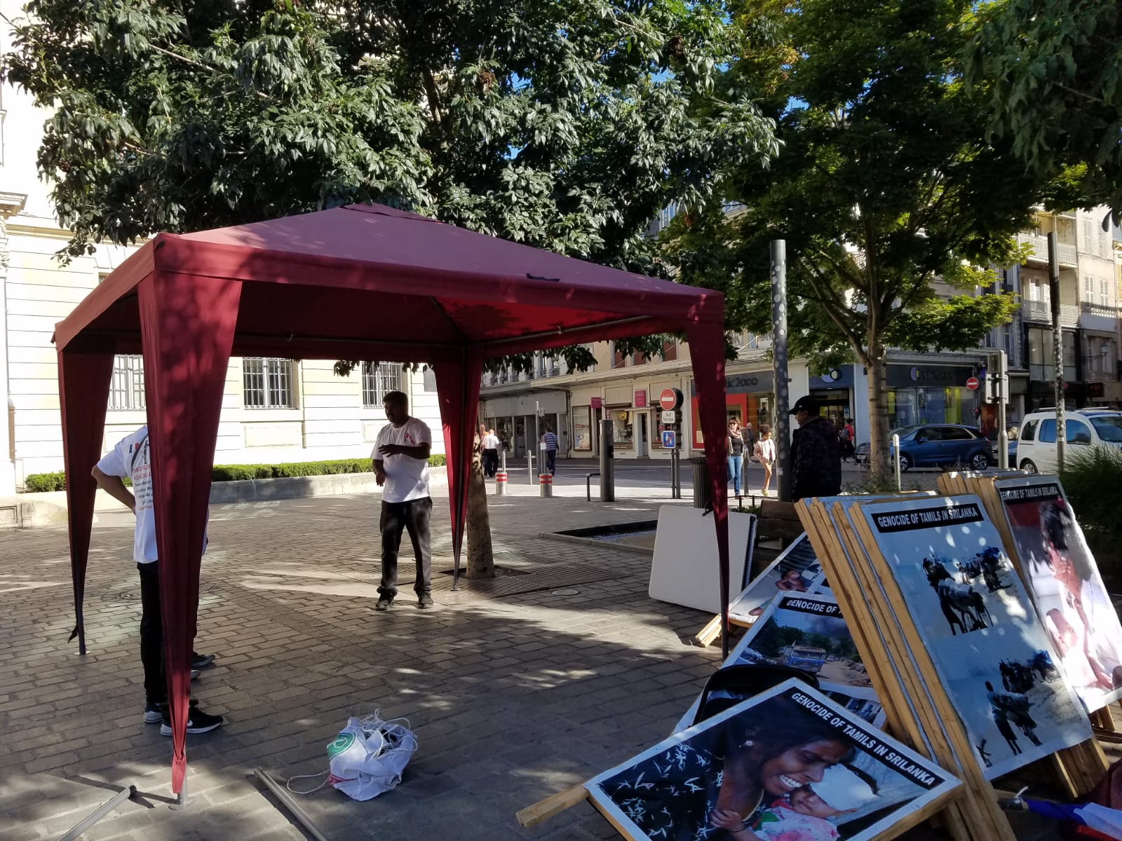 பிரான்சில் இருந்து தமிழின அழிப்புக்கு நீதி கோரி ஜெனீவா ஐ.நா. மனிதவுரிமைகள் செயலகம் நோக்கிய நடைபயணத்தில் இன்று 8 ஆவது நாளாக துறோவா மாநிலத்தின் மாநகரசபையின் முன்பாக தமிழினப்படுகொலையின் சாட்சியங்கள் கொண்ட நிழற்படக்கண்காட்சி நடாத்தப்படுகின்றது. துறோவா வாழ் தமிழ் உணர்வாளர்களுடன் மாநகரசபை முன்பாக காலை 10.30மணிக்கு அகவணக்கத்துடன் ஆரம்பமாகியது. ஆரம்பித்தவுடனேயே பல பிரெஞ்சுமக்களும், வெளிநாட்டு மக்களும் வந்து படங்களை பார்வையிட்டுக் கொண்டிருக்கின்றனர்.