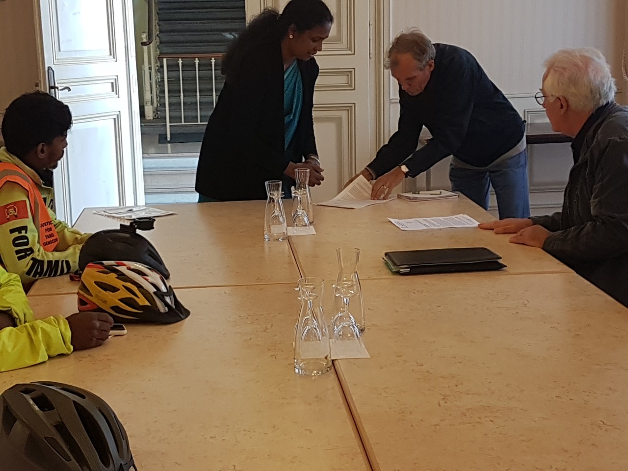 தொடர்ச்சியாக Sélestat மாநகரசபையின் காலை உணவு உபசரிப்பின் பின் ஆரம்பித்த நீதிக்கான மனிதநேய ஈருருளிப் பயணம் தொடர்ச்சியாக Colmar மற்றும் Mulhouse நகரபிதாவையும் Alsace மாநில முதல்வரையும் சந்தித்து எமது ஐந்தம்ச கோரிக்கை அடங்கிய மனு கையளிக்கப்பட்டது. அத்தோடு Alsace மாநிலப் பத்திரிகையுடனும் கலந்துரையாடப்பட்டது.