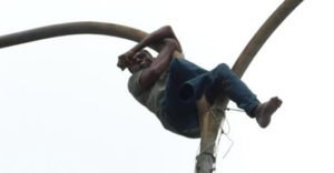 இதையடுத்து, தீயணைப்பு படையின் அதிகாரிகள் சம்பவ இடத்திற்கு விரைந்து அவரை மின்விளக்கு கம்பத்திலிருந்து கீழே கொண்டு வந்தனர்.