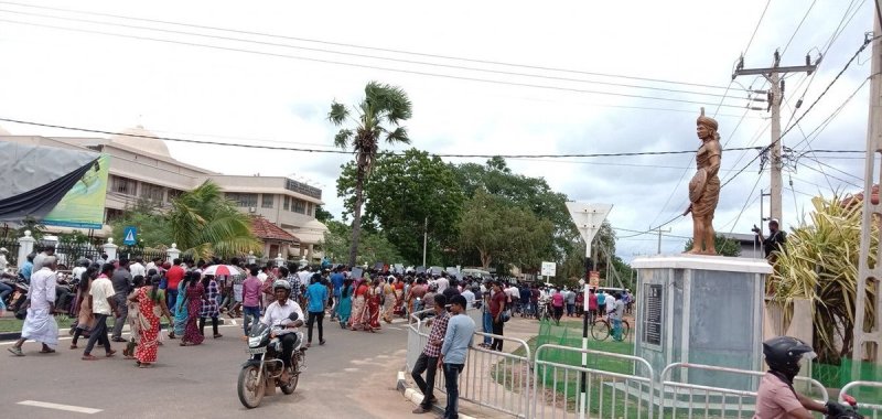 முல்லைத்தீவு மாவட்ட செயலகத்திற்கு முன்பாக வீதியை மறித்து பெருந்திரளான மக்கள் போராட்டத்தில் ஈடுபட்டு வருகின்றனர்.