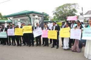 அதற்கமைய கல்முனையில் பணிப்புறக்கணிப்பில் ஈடுபட்டுள்ள சட்டத்தரணிகள் கல்முனை நீதிமன்ற கட்டட தொகுதி முன்பாக கண்டன எதிர்ப்பு போராட்டத்தையும் முன்னெடுத்திருந்தனர்.