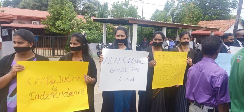 முல்லைத்தீவு மாவட்ட நீதவான் நீதிமன்றத்திற்கு முன்பாக சட்டத்தரணிகள் வாயில் கறுப்பு துணி கட்டி கவனயீர்ப்பு நடவடிக்கைணை முன்னெடுத்தனர். அத்துடன், வடக்கு கிழக்கிலுள்ள அனைத்து நீதிமன்றங்களில் பணியாற்றும் சட்டத்தரணிகளும் இன்று பணிகளை புறக்கணித்து எதிர்ப்பு போராட்டங்களில் பங்கேற்றனர்.