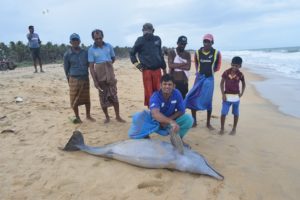 அதன் பின்னர் அதனை இழுத்து கரையில் சேர்த்துள்ளார். சுமார் 06 அடி நீளமுடைய டொல்பின் ஒன்றே பல காயங்களுடன் இறந்த நிலையில் கரை ஒதுங்கியுள்ளது.
