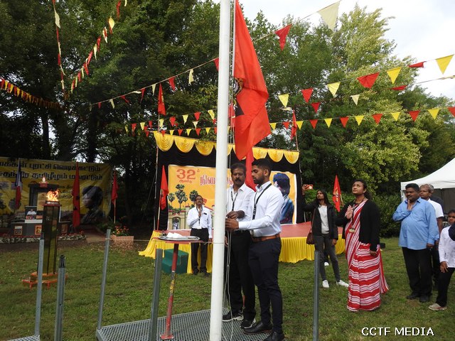 பிரெஞ்சு தேசத்தின் தேசியக்கொடியை பிரெஞ்சு நாடாளுமன்ற உறுப்பினர்Philip Doucet அவர்கள் ஏற்றிவைக்க தமிழீழத் தேசியக்கொடியை ஆர்ஜொந்தை தமிழ் இளையோர் அமைப்பின் செயற்பாட்டாளர் செல்வன் ஞானசீலன் நிதர்சன் அவர்கள் ஏற்றிவைத்தார். தியாகதீபம் லெப்.கேணல் திலீபன் அவர்களின் திருஉருவப்படத்திற்கான ஈகைச்சுடரினை 02.11.1987 அன்று கொக்குவில் பகுதியில் வீரச்சாவடைந்த கப்டன் ஜெயராம் (மோகன்ராம்) அவர்களின் சகோதரி ஏற்றிவைக்க கேணல் சங்கர் அவர்களின் திருஉருவப்படத்திற்கான ஈகைச்சுடரினை 2009 இறுதிப்போரில் வீரச்சாவடைந்த மாவீரர் திவ்வியராஜ் (உருத்திரன்) அவர்களின் சகோதரன் ஏற்றிவைத்தார்.