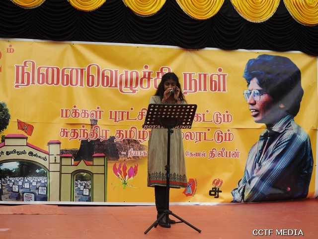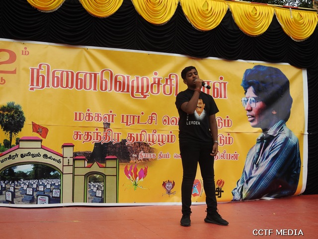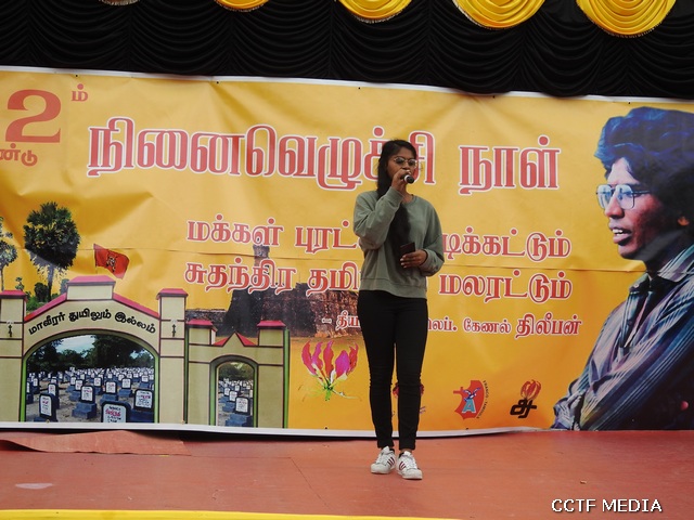 கொலம்பஸ் தமிழ்ச்சோலை மாணவர்களின் தியாக தீபம் திலீபன் நினைவு சுமந்த கவிதை, பேச்சு, ஆர்ஜொந்தை தமிழ்ச்சோலை மாணவர்கள் மற்றும் ஆசிரியையின் தியாக தீபம் திலீபன் நினைவு சுமந்த கவிதை, பேச்சு, ஆர்ஜோந்தை தமிழ் இளையோர் அமைப்பின் செயற்பாட்டாளர் செல்வன் ஞானசீலன் நிதர்சன் அவர்களின் பிரெஞ்சுமொழியிலான பேச்சு போன்ற நிகழ்வுகளோடு, தமிழ்ச்சோலை மாணவர்கள் மற்றும் தமிழர் கலைபண்பாட்டுக்கழக கலைஞர்களின் மாவீரர் நினைவு சுமந்த பாடல்கள் அனைவரின் மனங்களையும் மெய்மறக்கச்செய்திருந்தன.
