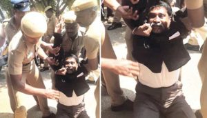 கரூர் கோர்ட்டு வளாகத்தில் சமூக ஆர்வலர் முகிலன் திடீரென தர்ணா போராட்டத்தில் ஈடுபட்டதால், போலீசார் அவரை குண்டு கட்டாக தூக்கி சென்றனர். இதனால் பரபரப்பு ஏற்பட்டது.ஈரோடு மாவட்டம் சென்னிமலையை சேர்ந்த சமூக ஆர்வலரான முகிலன் (வயது 53). இவர் மீதான பாலியல் குற்றச்சாட்டு வழக்கில் சி.பி.சி.ஐ.டி. போலீசார் வழக்குப்பதிந்து, அவரை கைது செய்து திருச்சி மத்திய சிறையில் அடைத்தனர். முகிலன் மீது இந்திய இறையாண்மைக்கு எதிராக பேசியதாக கரூர் மாவட்டம் அரவக்குறிச்சி போலீஸ் நிலையத்தில் வழக்குப்பதிவு செய்யப்பட்டுள்ளது. இந்த வழக்கு கரூர் முதன்மை ஜூடிசியல் மாஜிஸ்திரேட் கோர்ட்டில் நடந்து வருகிறது. இந்த வழக்கு நேற்று விசாரணைக்கு வந்தது. இதையடுத்து அவரை கரூர் கோர்ட்டில் ஆஜர்படுத்துவதற்காக திருச்சி மத்திய சிறையில் இருந்து பலத்த பாதுகாப்புடன் வேனில் போலீசார் அழைத்து வந்தனர்.