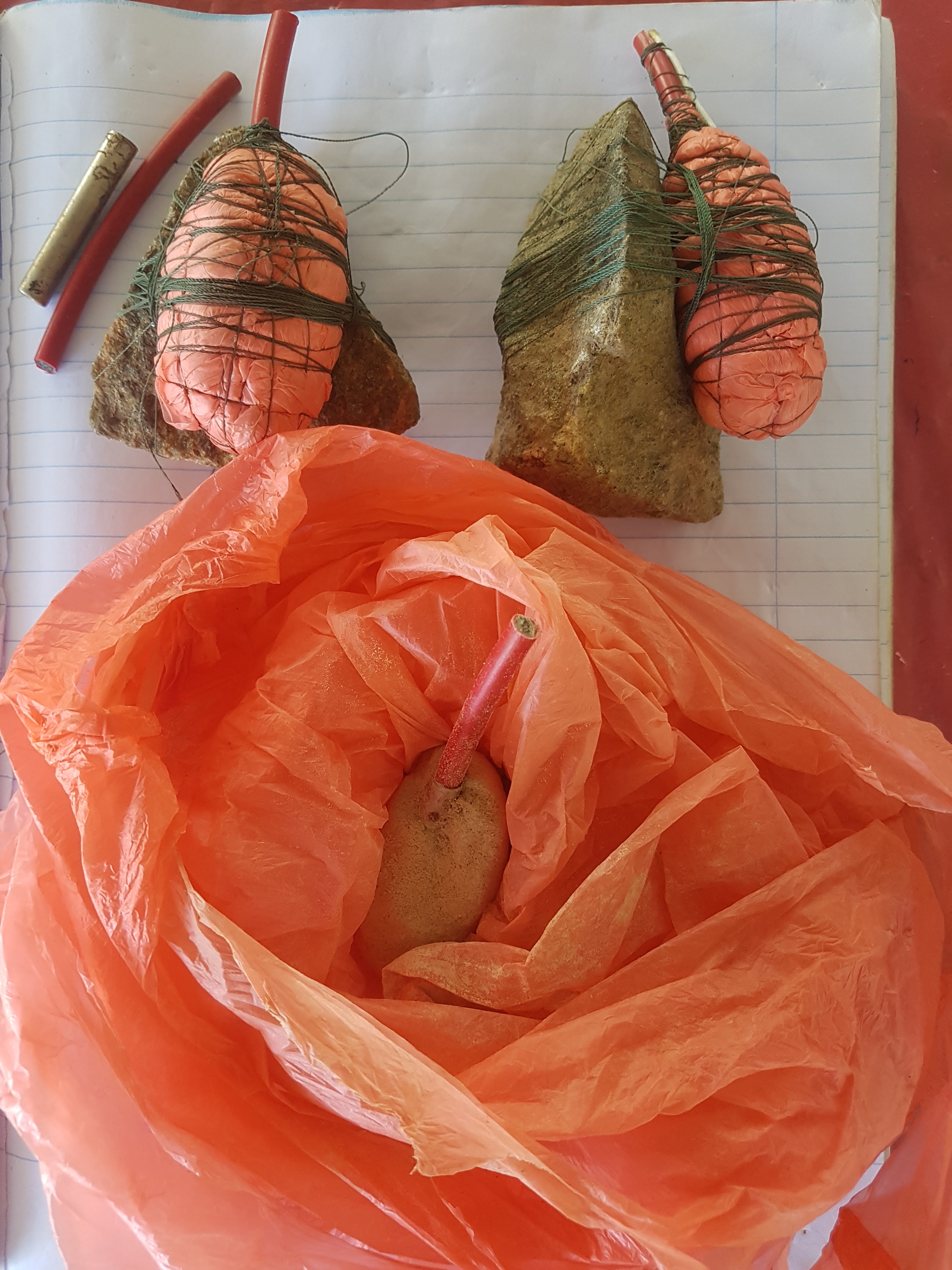 குறித்த பொதிக்குள் 4 டெடனேட்டர்கள் உள்ளிட்ட 60 கிராம் வெடி மருந்து என்பன மீட்க்கப்பட்டுள்ளன.