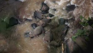 தாய்லாந்தில் அருவியில் இருந்து விழுந்து குட்டியானை உள்பட மொத்தம் 6 யானைகள் பாறைகளில் மோதி பரிதாபமாக உயிரிழந்தது.தாய்லாந்தில் காவோ யாய் தேசிய பூங்கா உள்ளது. பெரும் காடான இங்கு யானைகள் உட்பட பல்வேறு வன விலங்குகள் வாழ்ந்து வருகின்றன. இந்தப் பூங்காவிற்குள் ஹயூ நரோக் என்ற அருவி உள்ளது.