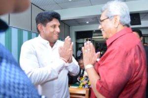 ஜனாதிபதித் தேர்தலுக்கான வேட்புமனுக்கள் இன்று தாக்கல் செய்யப்பட்டது. இதன்போது தேர்தல்கள் ஆணைக்குழுவில் தனது வேட்புமனுவைத் தாக்கல் செய்த கோத்தாய ராஜபக்ஷ, ஐக்கிய தேசிய முன்னணியின் வேட்பாளர் சஜித் பிரேமதாசவிற்கு வாழ்த்துத் தெரிவிக்கும் புகைப்படத்தை அவருடைய உத்தியோகபூர்வ பேஸ்புக் பக்கத்தில் பகிர்ந்திருப்பதுடன், அதன் கீழ் இவ்வாறு பதிவிட்டிருக்கிறார்.