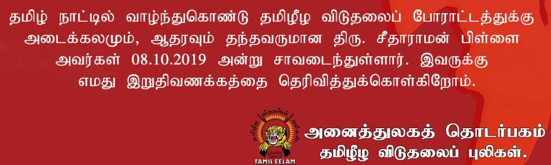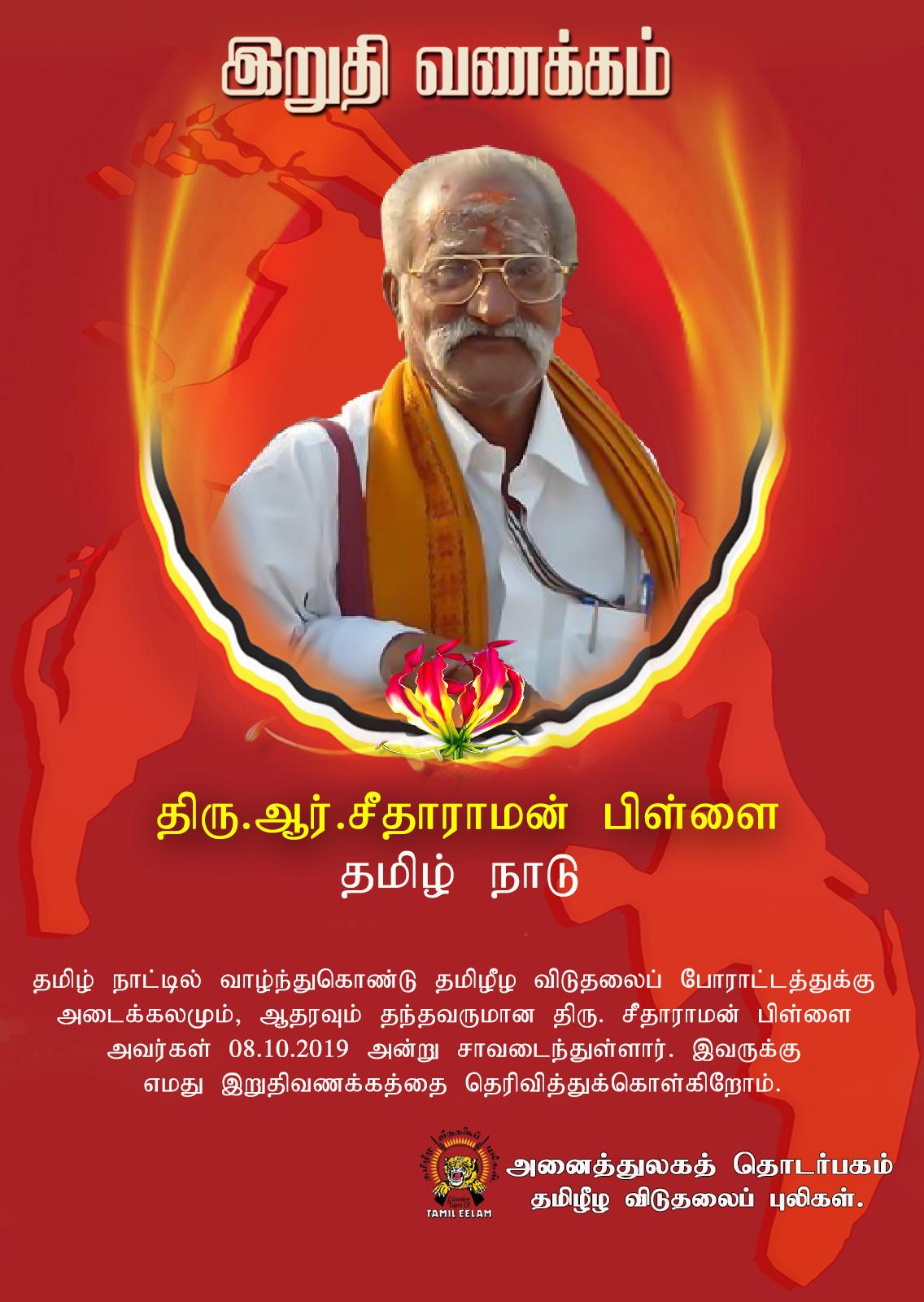 தமிழ்நாடு முக்கிய செய்திகள் திரு.ஆர் சீதாராமன்பிள்ளை அவர்களுக்கு இறுதி வணக்கம்- அனைத்துலகத் தொடர்பகம். Posted on October 10, 2019 at October 10, 2019 by கரிகாலன் 518 0
