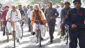 இதற்காக அவர் ஜன்சதாப்தி எக்ஸ்பிரஸ் ரெயிலில் சண்டிகரில் இருந்து இன்று காலை கர்னல் நகருக்கு வந்து சேர்ந்தார். அங்கிருந்து வீட்டுக்கு இ-ரிக்சாவில் சென்றார். பின்னர் அங்கிருந்து சுமார் அரை கிலோ மீட்டர் தொலைவில் உள்ள வாக்குச்சாவடிக்கு சைக்கிளில் சென்று தனது வாக்கை பதிவு செய்தார்.