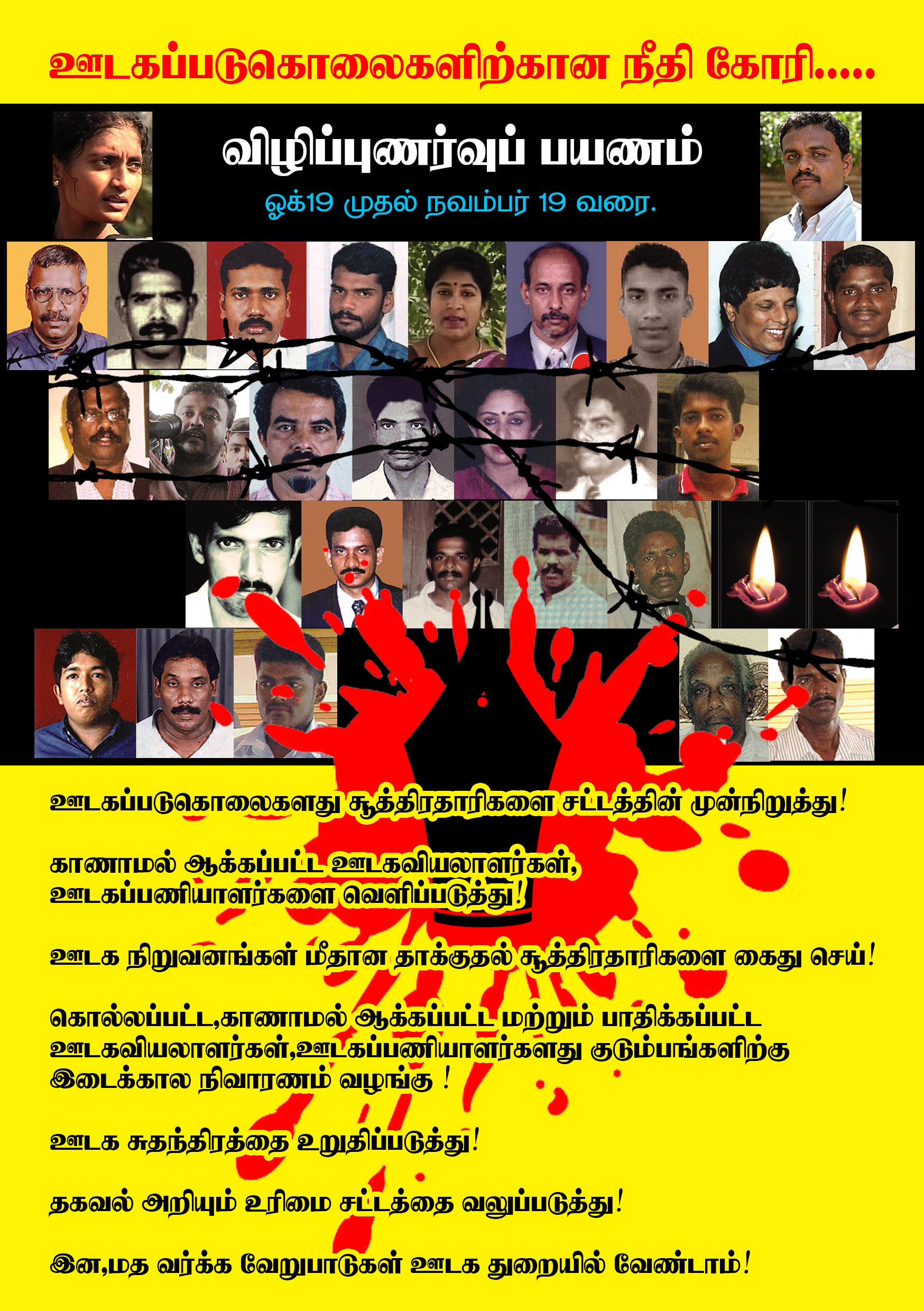 இந்நிலையில் நண்பன் நிமல் படுகொலை செய்யப்பட்ட ஒக்டோபர் 19 முதல் நவம்பர் 19 வரையிலான ஒரு மாத காலத்தை ஊடகப்படுகொலைகள்,காணாமல் ஆக்குதல்கள்,அச்சுறுத்தல்களிற்கான நீதி கோரி பயணிக்கும் காலமாக வடக்கு ஊடக அமைப்புக்களாகிய நாம் பிரகடனப்படுத்துகின்றோம்.