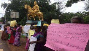 பொதுஜன பெரமுனவின் ஐனாதிபதி வேட்பாளரும் முன்னாள் பாதுகாப்பு அமைச்சின் செயலாளருமான கோட்டாபய ராஐபக்ஷவின் யாழ் விஜயத்திற்கு எதிர்ப்பு தெரிவித்து காணாமல் ஆக்கப்பட்டோரின் உறவினர்கள் போராட்டத்தில் ஈடுபட்டுள்ளனர்.