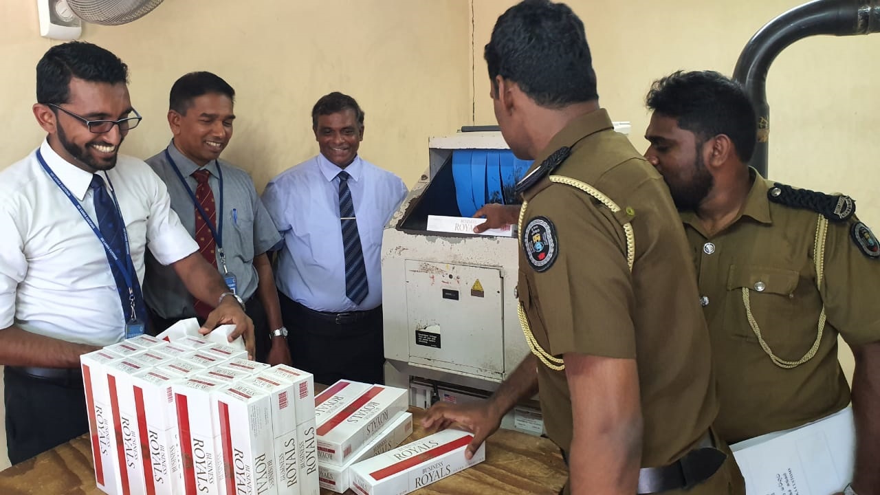 கடந்த 2018 ஆம் ஆண்டு ஆகஸ்ட் மாதம் 7 ஆம் திகதி நாட்டுக்கு சட்ட விரோதமாகக் கொண்டு வரப்பட்ட சிகரட்டுக்கள் இன்று இலங்கை சுங்க திணைக்களத்தின் விசாரணைப்பிரிவினால் அழிக்கப்பட்டது.