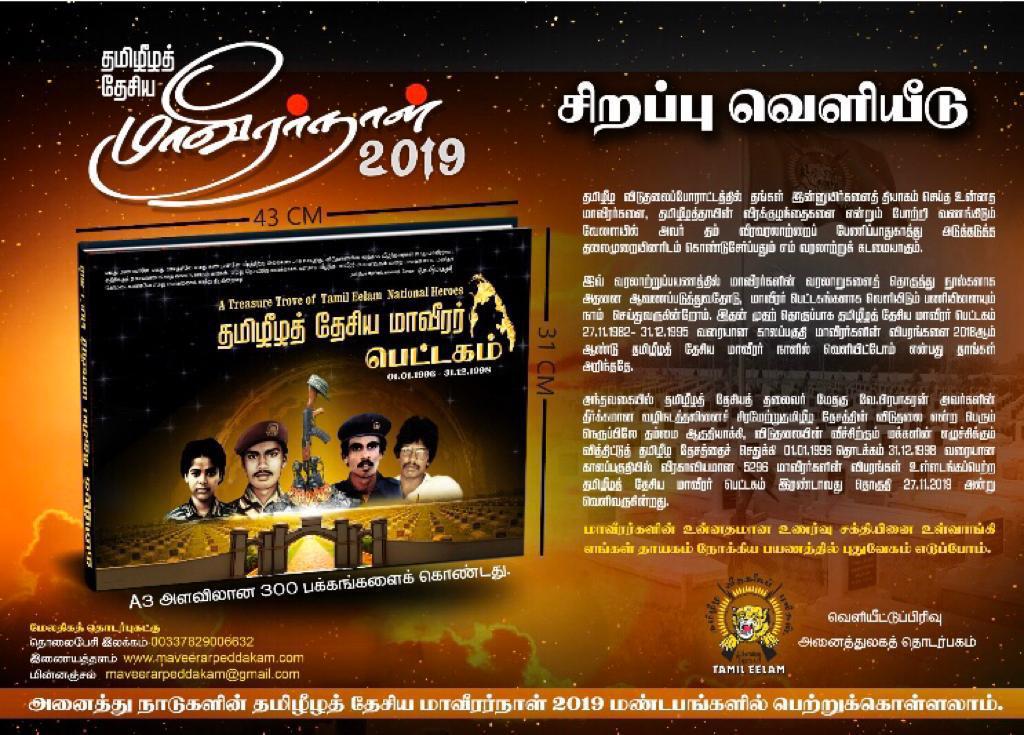 புலம்பெயர் தேசங்களில் முக்கிய செய்திகள் தேசிய மாவீரர் நாள் – 2019 சிறப்பு வெளியீடுகள். Posted on November 10, 2019 at 10:48 by கரிகாலன் 893 0 தேசிய மாவீரர் நாள்2019 சிறப்பு வெளியீடுகள். அனைத்து நாடுகளின் தேசிய மாவீரர் நாள் மண்டபங்களில் பெற்றுக்கொள்ளலாம்.