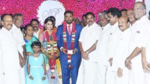 இந்நிலையில் சசிமோகன் – பூர்ணிமா ஆகியோரது திருமண வரவேற்பு விழா தருமபுரி மாவட்டம், காரிமங்கலம் வட்டம் கெரகோடஅள்ளி கிராமத்தில் தானப்ப கவுண்டர் மெட்ரிக் மேல்நிலைப்பள்ளி வளாகத்தில் இன்று நடைபெற்றது. இவ்விழாவில் தமிழக முதல்வர் பழனிசாமி கலந்துகொண்டு மணமக்களுக்கு மலர்க்கொத்து வழங்கி வாழ்த்தினார்.