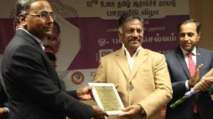 இதற்காக அவர், கடந்த 8-ம் தேதி அதிகாலை சென்னையில் இருந்து புறப்பட்டு அமெரிக்காவின் சிகாகோ நகருக்குச் சென்றார். இந்நிலையில் இன்று சிகாகோ தமிழ்ச் சங்கம் சார்பில் நடைபெற்ற விழாவில் துணை முதல்வர் ஓ.பன்னீர்செல்வத்துக்கு தங்கத் தமிழ் மகன் விருது வழங்கப்பட்டது.