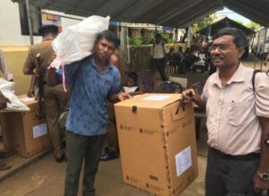 யாழ்.மாவட்டத்தில் 531 வாக்களிப்பு நிலையங்களில் 4 இலட்சத்து 75 ஆயிரத்து 176 பேர் வாக்களிக்க தகுதி பெற்றுள்ள நிலையில் வாக்களிப்பு நிலையங்களுக்கான வாக்குபெட்டிகள் அரச ஊழியர்களின் பங்களிப்பில் பொலிஸ் பாதுகாப்புடன் எடுத்து செல்லப்படுகின்றன.