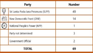 அதன்படி ஸ்ரீலங்கா பொதுஜன பெரமுனவிற்கு எதிராக 49 முறைப்பாடுகளும் புதிய ஜனநாயக முன்னணிக்கு எதிராக 14 முறைப்பாடுகளும் தேசிய மக்கள் சக்திக்கு எதிராக இரு முறைப்பாடுகளை கிடைத்துள்ளதாக அந்த அமைப்பு தெரிவித்துள்ளது.