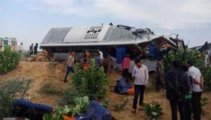 ராஜஸ்தான் மாநிலம் பிகானர் மாவட்டம், ஸ்ரீ தங்கர்கர் அருகே தேசிய நெடுஞ்சாலையில் இன்று காலையில் பயணிகளை ஏற்றிக்கொண்டு ஒரு பேருந்து சென்றுகொண்டிருந்தது. அப்போது அதே பாதையில் வந்த லாரி, பேருந்தின் மீது திடீரென மோதியது. கண்ணிமைக்கும் நேரத்தில் நடந்த இந்த விபத்தில் இரண்டு வாகனங்களும் கடுமையாக சேதமடைந்தன. பேருந்தில் இருந்த பயணிகள் இடிபாடுகளில் சிக்கி உடல் உறுப்புகள் சிதைந்த நிலையில் உயிருக்குப் போராடினர்.