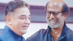 எங்களுடைய நட்பை யாராலும் பிரிக்க முடியாது. கருத்துகள் மாறலாம், நட்பு மாறாது. கமலுக்கும், எனக்குமான நட்பு உயிரோட்டமானது. அதை யாராலும் உடைக்க முடியாது. நாங்கள் இருவருமே எங்களின் வளர்ச்சிக்காக எங்களின் ரசிகர்களைப் பயன்படுத்திக் கொண்டதில்லை. படங்களுக்காகக் கொள்கைகளை மாற்றிக்கொண்டது இல்லை. அவர் நீண்ட நாள் வாழ வேண்டும். இந்த நட்பை ரசிகர்களும் காப்பாற்ற வேண்டும். அன்பை விதையுங்கள். எங்கள் இருவருக்கும் வேறுபட்ட கருத்துகள் இருக்கலாம். ஆனால் அரசியலுக்கு வந்தால், எங்களுக்குள் சண்டை போட்டுக் கொள்ள மாட்டோம்” என்று பேசினார் ரஜினி.