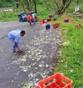 மஸ்கெலியாவிலிருந்து நோர்வுட் பகுதிக்கு மதுபான போத்தல்களை கொண்டு சென்ற லொறியில் இருந்து சுமார் 100 க்கும் மேற்பட்ட மதுபான போத்தல் கொண்ட பெட்டிகள் வீதியில் விழுந்தமையால் சிறிது நேரம் போக்குவரத்து பாதிக்கப்பட்டது.மஸ்கெலியாவிலிருந்து நோர்வுட் பகுதிக்கு மதுபான போத்தல்களை கொண்டு சென்ற லொறியில் இருந்து சுமார் 100 க்கும் மேற்பட்ட மதுபான போத்தல் கொண்ட பெட்டிகள் வீதியில் விழுந்தமையால் சிறிது நேரம் போக்குவரத்து பாதிக்கப்பட்டது.அவ்வாறு உடைந்த மதுபான போத்தல்களை வீதியில் இருந்துலொறியின் சாரதி மற்றும் உதவியாளருடன் அப்பகுதி மக்களும் இணைந்து அப்புறப்படுத்திய பின்னர் போக்குவரத்து வழமைக்கு திரும்பியுள்ளமை குறிப்பிடத்தக்கது.
