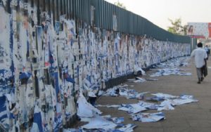 அந்தவகையில் அங்காங்கே ஒட்டப்பட்டுள்ள சுவரொட்டிகள் மற்றும் பதாதைகள் முதலானவற்றை அகற்றும் பணி பொலிஸாரின் கண்காணிப்பின் கீழ் இடம்பெற்று வருகின்றது.