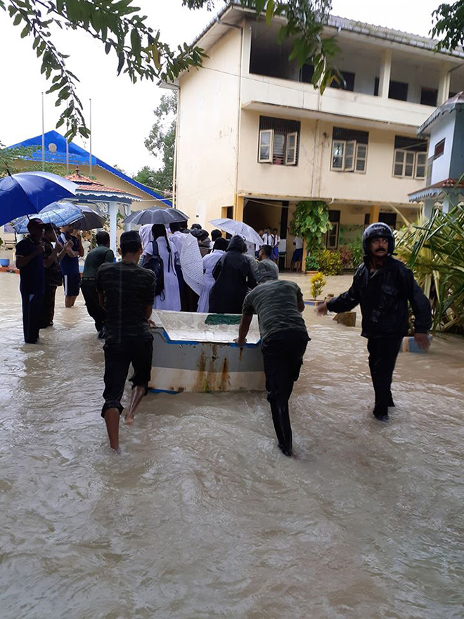 கிளிநொச்சி இந்தக்கல்லூரிக்குப் பரீட்சைக்குச் செல்லும் மாணவர்கள் வெள்ளம் காரணமாகப் பாதிக்கப்பட்டிருந்த நிலையிலும் பாடசாலையினை சுற்றி வெள்ளம் காணப்படுவதனாலும் இராணுவத்தினரால் படகு மூலம் பரீட்சை மண்டபத்திற்குள் கொண்டு சென்று இறக்கிவிடப்பட்டுள்ளனர்.