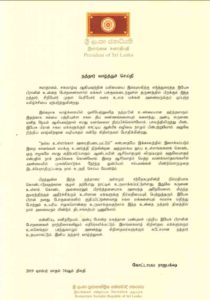 ஜனாதிபதி கோட்டாபய ராஜபக்ஷ அறிக்கை ஒன்றை வௌியிட்டு இந்த தெரிவித்துள்ளார்.