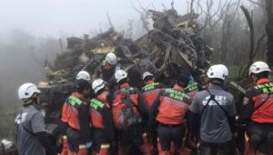 இந்நிலையில், தைபே மலைப்பகுதிக்கு அருகே சென்றபோது விமானியின் கட்டுப்பாட்டை இழந்தது. இதனால் மலைப்பகுதியில் உள்ள ஒரு இடத்தில் அவசரமாக தரையிறக்க முயன்றனர். ஆனால், ஹெலிகாப்டர் கீழே விழுந்து நொறுங்கியது.