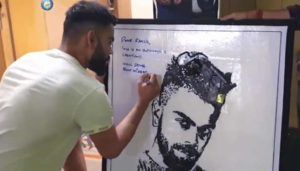வெவ்வேறு வடிவிலான உதிரிபாகங்கள், வயர்களை கச்சிதமாக இணைத்து தத்ரூபமாக கோலியின் உருவத்தை கொண்டு வந்து ஆச்சரியப்படுத்திய அந்த ரசிகரை விராட் கோலி நேரில் சந்தித்து வாழ்த்து தெரிவித்ததுடன் இந்த ஓவியத்தில் தனது ஆட்டோகிராப்பையும் பதிவிட்டார். பிறகு கோலிக்கு அந்த ஓவியத்தை பரிசாக ராகுல் பரேக் வழங்கினார். இதற்காக பகல்-இரவு பாராமல் 3 நாட்கள் செலவிட்டதாக அந்த ரசிகர் தெரிவித்துள்ளார்.