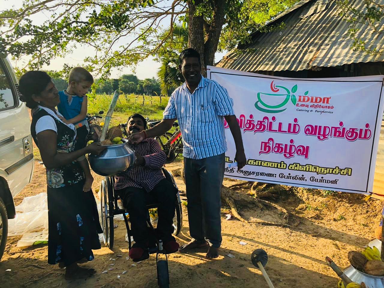 அந்த உயரிய நோக்கத்திற்காக பேர்லின் அம்மா உணவகம் மிகப் பெரும் பொருளாதார சிக்கல்களுக்கு முகம்கொடுத்து வரும் வரலாற்று மிக்க “மயில் குஞ்சன் ” குடியிருப்பு , கைவேலி மக்களுக்கு இன்றைய தினம் யேர்மனி பேர்லினில் வசிக்கும் திரு ஆறுமுகம் தயாபரன் குடும்பத்தின் முழுமையான நிதி அனுசரணையில் 40 குடும்பங்களுக்கு பொங்களுக்கு தேவையான அனைத்து பொருட்களையும் வழங்கி வைத்தது. இவ் நிகழ்வு குறிப்பிட்ட கிராம மக்களின் தேவையில் மிகவும் கரிசனை கொண்டவாரன திரு கனகையா அழகேந்திரன் அவர்களின் தலைமையில் மற்றும் கிளிநொச்சி மாற்றுவலுவுள்ளோர் சங்கத் தலைவர் திரு உமாகாந்தன் அவர்களின் ஒருங்கிணைப்பில் மிகச் சிறப்பாக நடைபெற்றது. இப்பெரும் உதவியை தகுந்த நேரத்தில் வழங்கிய திரு ஆறுமுகம் தயாபரன் அவர்களின் குடும்பத்திற்கு தாயக மக்களின் சார்பில் அம்மா உணவகம் தமது அன்பு வாழ்த்துகளை தெரிவிக்கின்றது.