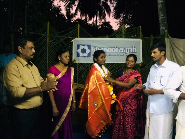 நீச்சல்-சைக்கிளோட்டம்-மரதன் ஆகிய மூன்று விதமான விளையாட்டுகளை உள்ளடக்கிய கலப்பஞ்சல் போட்டிக்கான இலங்கை அணியில் சைக்கிளோட்ட வீராங்கனையாக தெரிவுசெய்யப்பட்டு 2019 ஆம் ஆண்டுக்கான ஆசியமட்ட போட்டியில் பங்கேற்று வெண்கலப்பதக்கத்தை வென்றிருந்த வெண்கரம் அமைப்பின் சாந்தை-சில்லாலை படிப்பக மாணவியான தமிழரசியின் சாதனையை பாராட்டி பொன்னாடை போர்த்தி மாலை அணிவித்து கௌரவிக்கப்பட்டிருந்ததுடன் சிறு தொகை பணப்பரிசும் ஊக்குவிப்பு பரிசாக வழங்கப்பட்டிருந்தது.