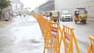 அந்த பாதையில் வாகனங்கள் செல்ல முடியாதபடி இன்று காலை தடுப்புகள் அமைக்கப்பட்டன.