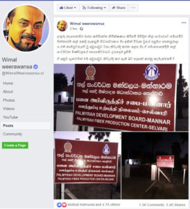 அந்தப் பெயர்ப்பலகையில் தமிழுக்கு கொடுக்கப்பட்டிருந்த முன்னுரிமையை அவதானித்த அமைச்சர் விமல் வீரவன்ச, அந்த பெயர்ப் பலகையை கழற்றிவிட்டு உடனடியாக சிங்களத்தில் முதலாவதும் தமிழில் அடுத்ததாகவும் வரும் வகையில் மாற்றும்படி உரிய அதிகாரிகளுக்கு உத்தரவிட்டார்.