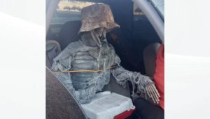 அமெரிக்காவில் முதியவர் ஒருவர் தனி வழித்தடத்தில் பயணிக்க வேண்டும் என்பதற்காக எலும்புக்கூடுக்கு தொப்பி அணிவித்து காரின் முன்இருக்கையில் அமர வைத்து சென்ற சம்பவம் பரபரப்பை ஏற்படுத்தியது.