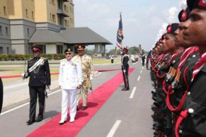 இங்கு வருகை தந்த பாகிஸ்தான் கடற்படைத் தளபதியை இராணுவ தலைமையகத்தின் பட்டாலியன் தலைமையகத்தின் கட்டளை தளபதி கேர்ணல் இந்திக பெரேரா, தலைமையக நுழைவாயிலில் வைத்து வரவேற்றதுடன், பின்னர் இலங்கை இராணுவ படையினரால் இராணுவ சம்பிரதாய முறைப்படி அணிவகுப்பு மரியாதைகள் வழங்கி வைக்கப்பட்டு வரவேற்கப்பட்டார்.