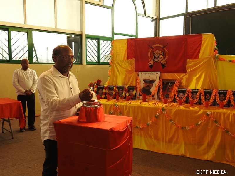 பொதுச்சுடரினை திரான்சி தமிழ்ச்சங்கத் தலைவர் திரு. கணேஸ் தம்பையா அவர்கள் ஏற்றிவைத்ததைத் தொடர்ந்து, மாவீரர்களின் திரு உருவப் படங்களுக்கான ஈகைச்சுடரினை 03.07.1988 அன்று விசுவமடு பகுதியில் வீரச்சாவைத் தழுவிக்கொண்ட 2 ஆம் லெப்ரினன்ட் மரியா அவர்களின் சகோதரனும், 20.06.1990 அன்று காரைநகர்ப் பகுதியில் வீரச்சாவைத் தழுவிக் கொண்ட வீரவேங்கை ரவி அவர்களின் சகோதரியும் ஏற்றிவைத்தனர்.
