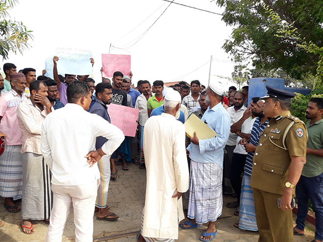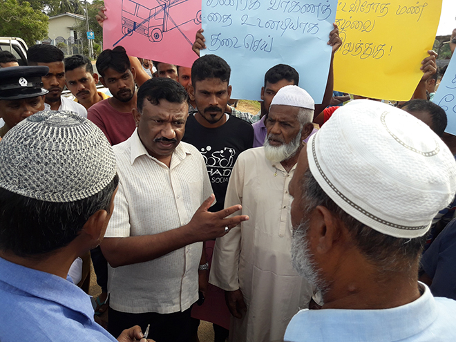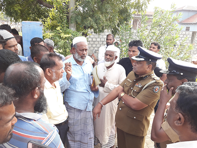 போராட்ட இடத்துக்கு வருகை தந்த திருகோணமலை மாவட்ட உதவி பொலிஸ் அத்தியேட்சர் எஸ்.ஆர்.எச். கமகே பள்ளிவாசல் தலைவர்களோடு பேச்சுவார்த்தை நடத்தினார்.